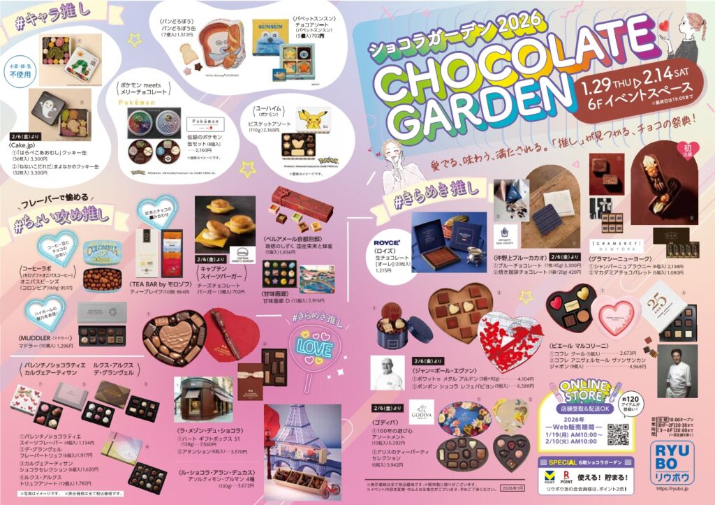 1月29日から2月14日まで、リウボウデパートで開催される 「ショコラガーデン 2026」 では、全国・世界から厳選された人気ブランドや話題のスイーツが勢ぞろい。見て楽しい、選んで嬉しい、味わって幸せになるチョコレートの祭典です。